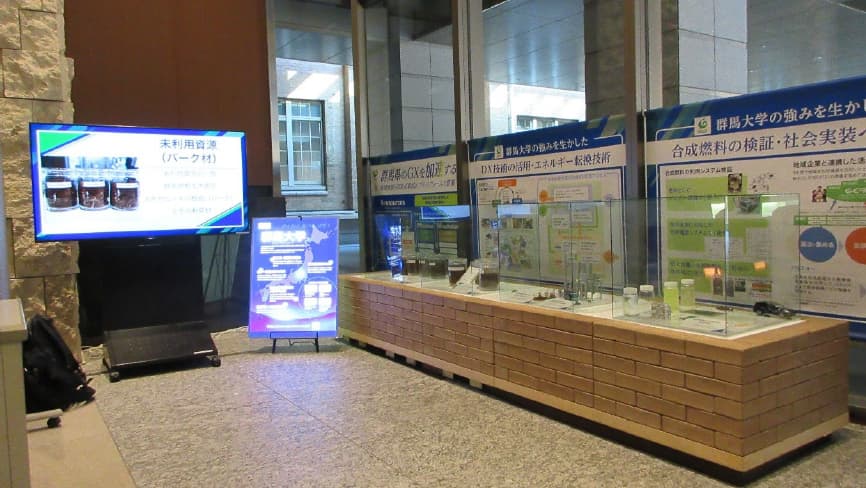2026/2/26(木)~3/26(木)文部科学省「情報ひろば」 特別展示「群馬大学の再生可能エネルギー・脱炭素化研究の取り組み~地域資源循環支援拠点G-C2REATE~」 が開催されました 本プロジェクトの詳細内容についてのパネルの他、 ・地元未利用資源であるバーク材と、それを用いたペレット加工品
